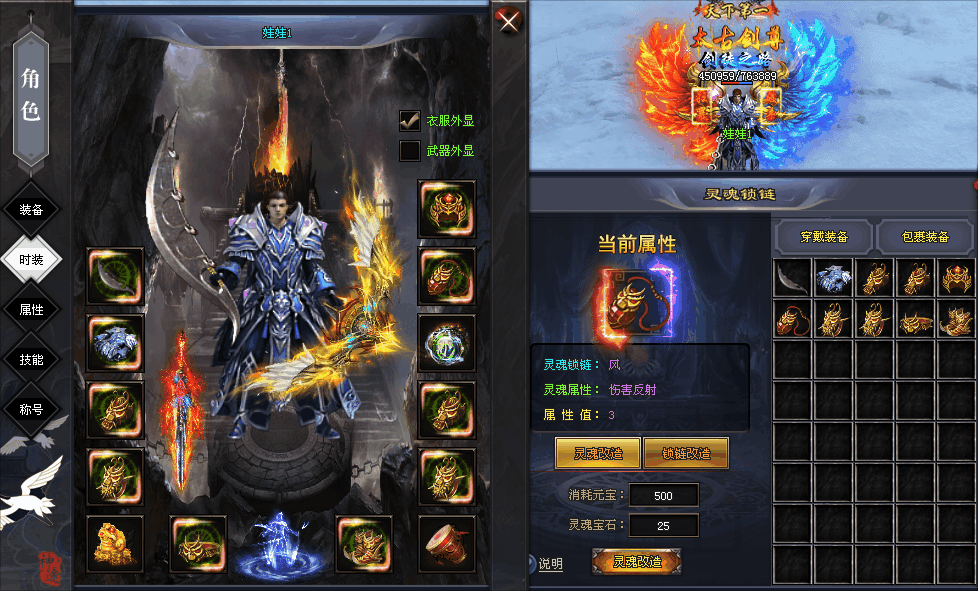 灵魂锁链:风、火、雷、电、雨。激活灵魂锁链才触发灵魂属性,激活位置会有特效!在罪恶之城可以改造【灵魂属性】和【灵魂锁链】!