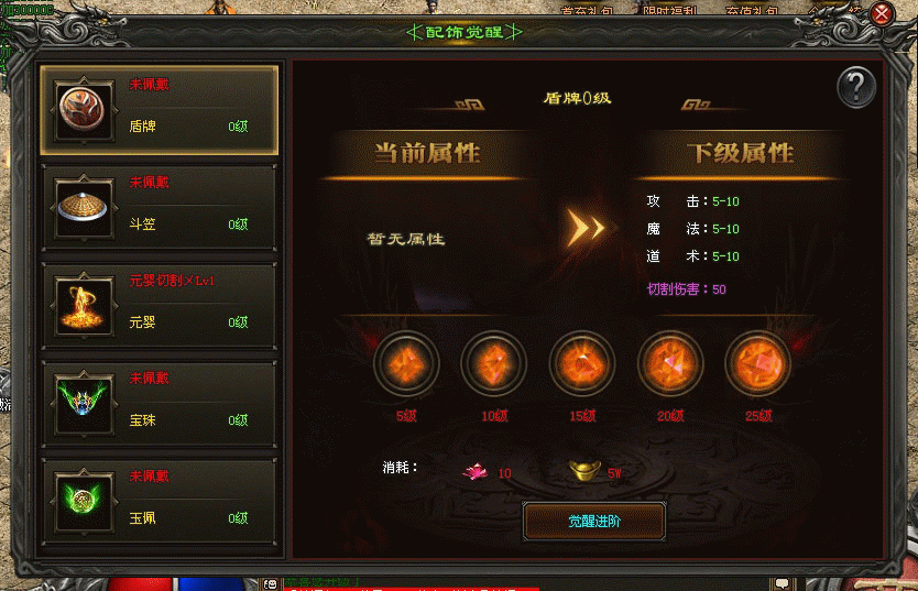 4. 称号晋阶:不同的称号会获取不同的属性加成,称号可以提升攻击,生命,魔法防御等几项属性值。