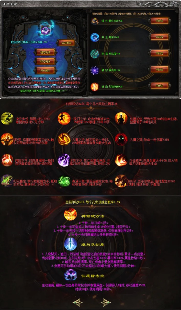 当进度满了后,就可以前往主城上方的圣物洗练获取BUFF。至于获得什么就看你的脸了