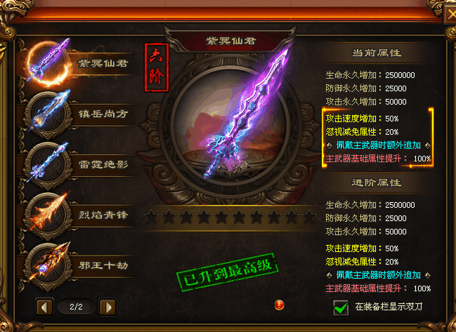 3)突破内功境界自动解锁对应的超神无双装备格,投放常规首饰或剑甲,可以获得原来装备50%的基础属性加成。