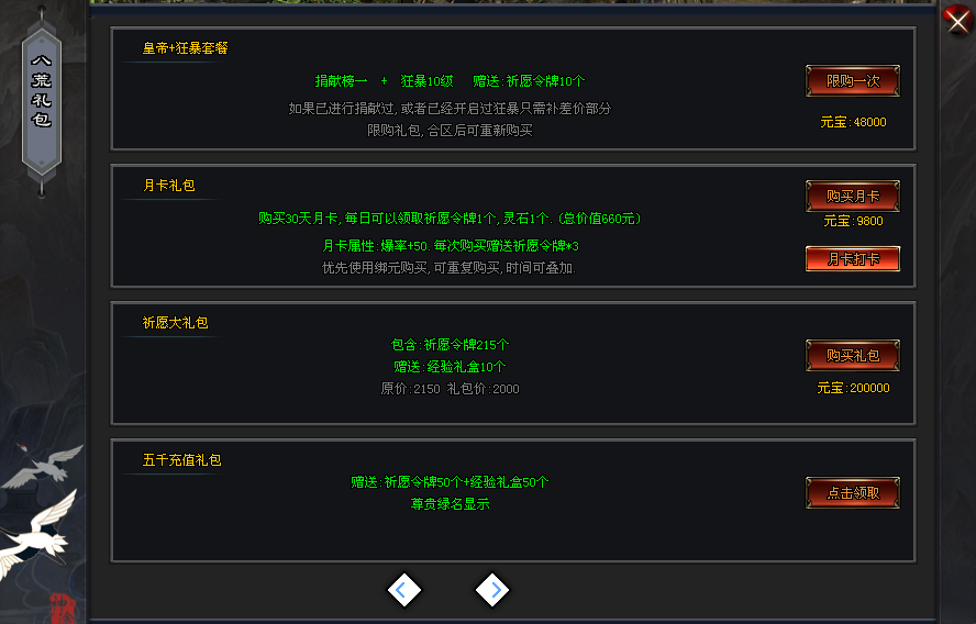 购买后增加爆率,狂暴百分百比例,以及祈愿令牌等材料。