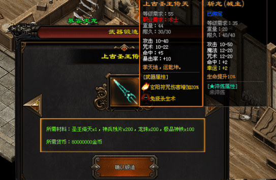 全新制作了数十种神器,各种武器,如审判、忘机、倚天、帝释都有带隐藏属性,各种经典神秘套、特戒、魅影重出江湖,倚天帝释可进阶。